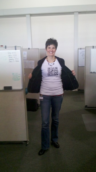 The QR codes works. When scanned, the code took you to a landing page with this photo of me in a Facebook profile costume.