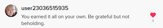 @tecko20 tells us: You earned it all on your own. Be grateful but not beholding.
