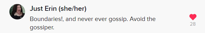 @growinguperin tells us: Boundaries! And never ever gossip. Avoid the gossiper.